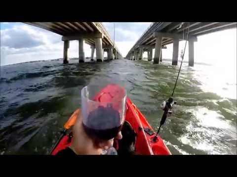 The water was pretty calm on the launch, but after 10 am, it was rippin’. By then, ComeOnFish and I were near the 2nd SBC. The waves were 2-3 ft, and ripped for several hours. White caps splashed over the bow, and I got sprayed many times. If you for a moment stopped to fix tackle, take a pee, or whatever, you found yourself far from the bridge on the outgoing. I pedaled so much, my knees and butt hurt. It was tough dropping rigs to the bottom.