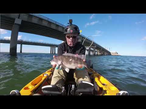 I needed a tautog for chirashi for ladies. Though, the wind was too strong for fishing CBBT (Chesapeake Bay Bridge Tunnel, VA) in the morning. While waiting for the mild wind in the afternoon, I fished Owl's creek (Rudee), in the morning for speckled sea trout. After I caught 2 specks at 20 and 22 ", I went to Chic's Beach (the launch spot for the CBBT. The wind was down, so I launched the kayak. I caught 3 conger eels, 7 toadfish, and 9 black sea bass. I managed to catch one keeper tautog at 17" out of 7 tautogs. The water is still too warm for tautog. The cold front moved in this week will help the tautog fishing, I hope.